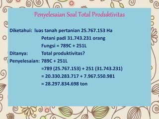Teori produksi jangka pendek, presentasi ini membahas secara keseluruhan mengenai teori produksi jangka pendek disertai dengan pertanyaan latihan. Anda dapat mengubah preferensi iklan Anda kapan saja. Produksi jangka pendek, yaitu jika beberapa faktor produksi tetap dan yang lain berubah (misalnya jumlah modal tetap, sedangkan perubahan tenaga kerja).