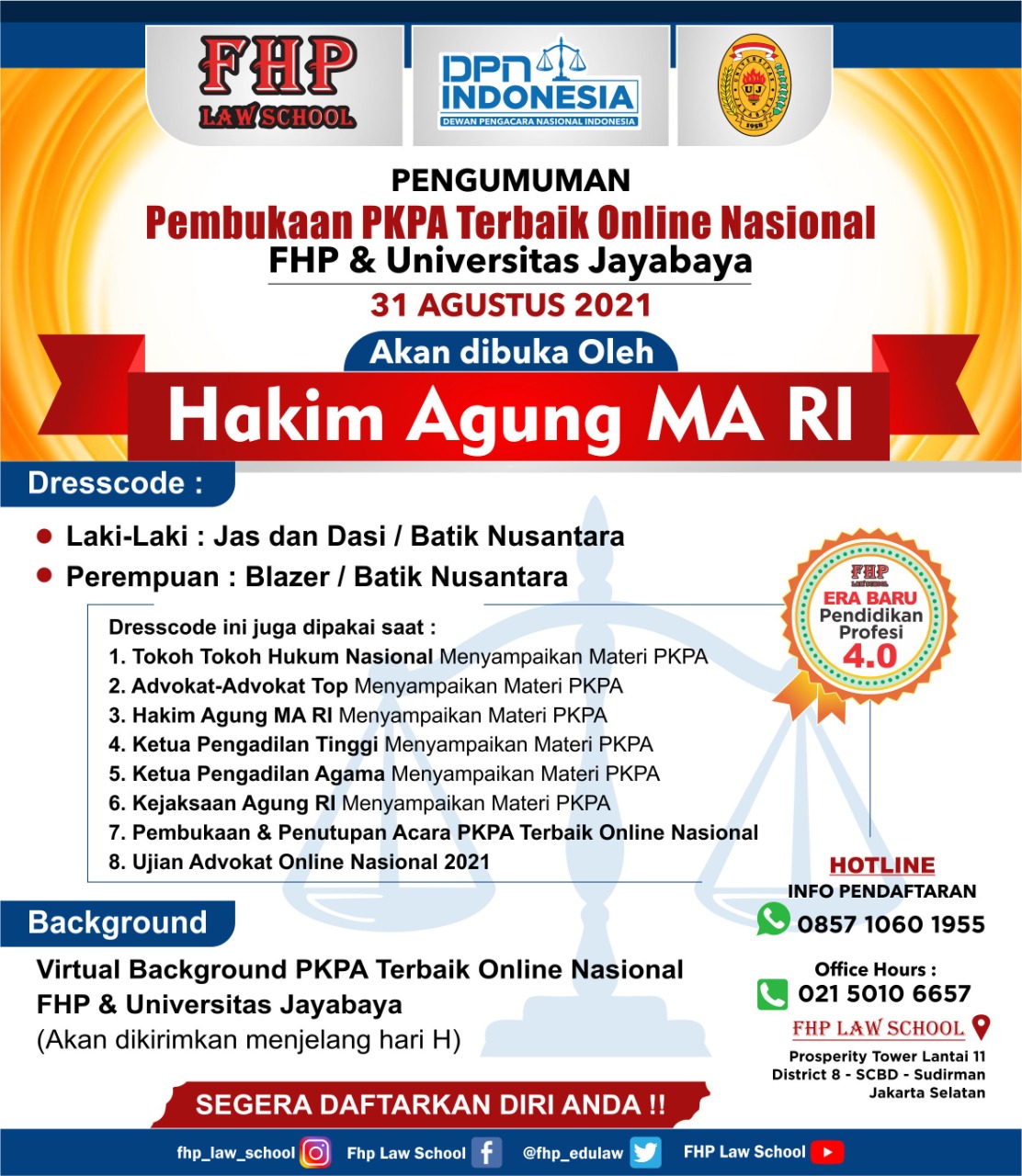 Pkpa fhp 2021 pusat Karir & Pelacakan Alumni. Untuk semua peserta Calon PMMB batch 1 2021 Ada perubahan informasi yang terkait dengan pakta integritas baru menggunakan prangko 6000 3000. Menjadi wadah Peseta Didik dalam meningkatkan pengetahuan, keterampilan, dan keahdilan di bidang hukum sebagai advokat yang menjijikkan;.